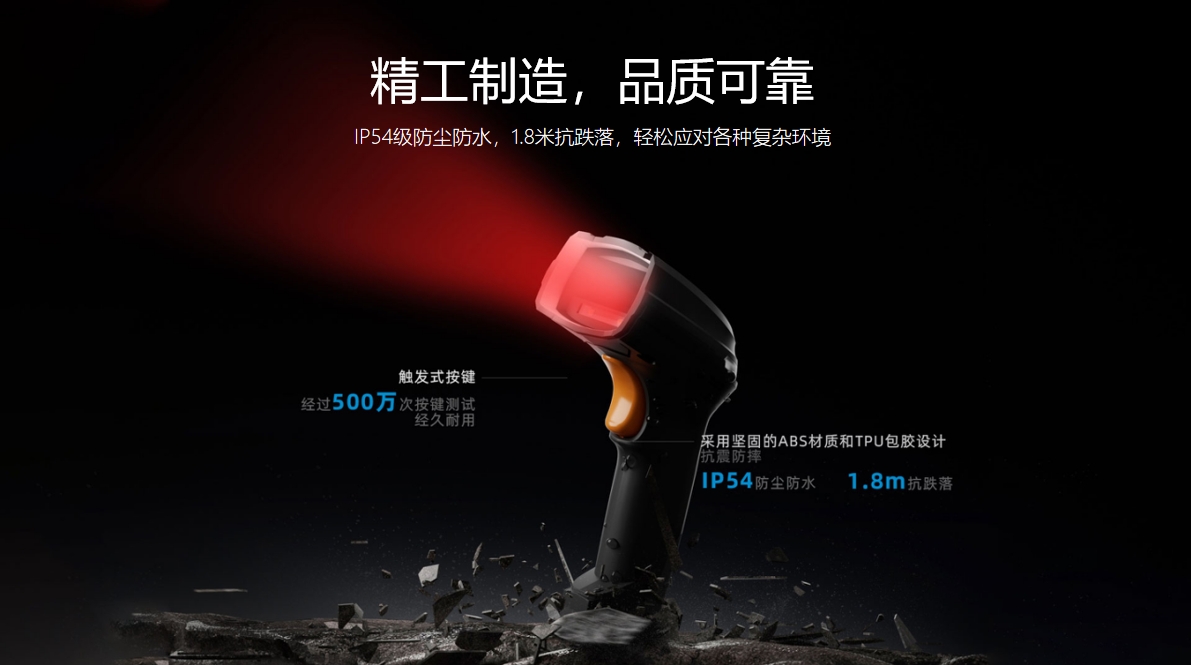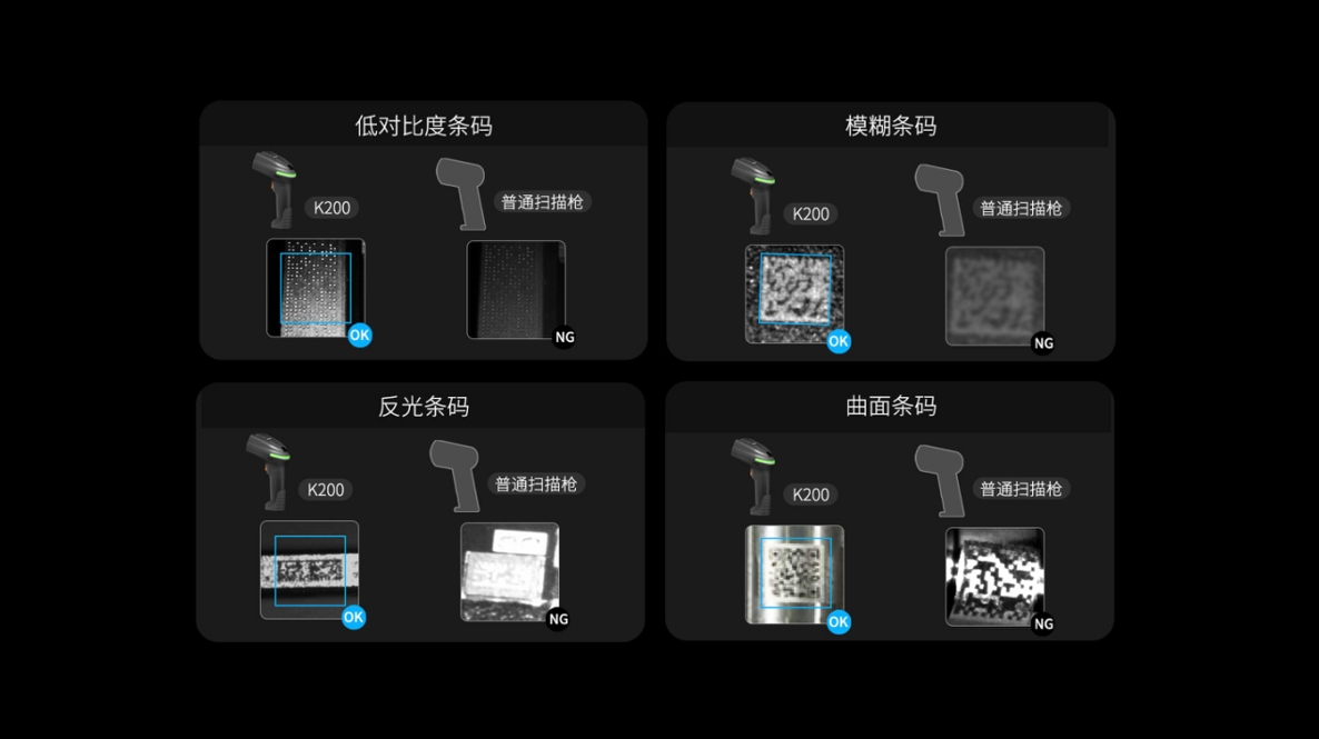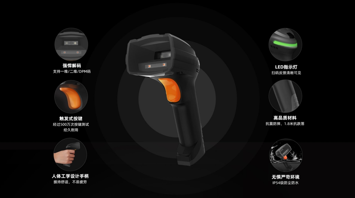 K200有線工業掃描槍譯碼當先暢享高效,智能雙色可變光源,精準識讀復雜條碼,精工品質,堅固耐用,三重掃碼反饋,人性化交互體驗,即插即用,多系統兼容.